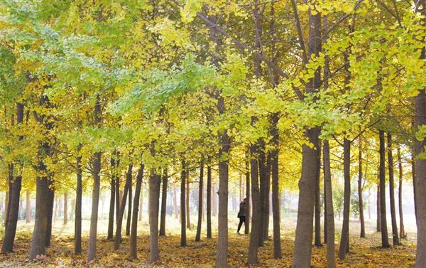 近日,周口市經(jīng)濟(jì)開發(fā)區(qū)人民廣場(chǎng),金黃色的楊樹葉在陽光照耀下熠熠生輝,給城市增添一抹亮色。張振海 攝