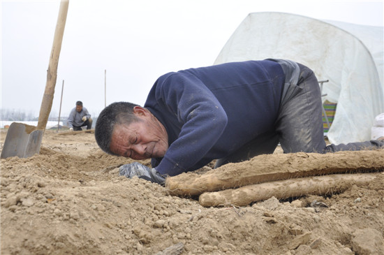 在沈丘縣,有不少像耿師傅這樣的挖山藥職業(yè)人,他們有的已經(jīng)70多歲了,仍然忙碌在田間地頭。由于山藥種植范圍分布廣,挖山藥工作持續(xù)時(shí)間可從當(dāng)年7月到來年5月,高峰季節(jié),一個(gè)技術(shù)好的挖山藥職業(yè)人一天可以收入300多元,他們?cè)谠黾邮杖氲耐瑫r(shí),也用自己的辛勤勞作詮釋著勞動(dòng)人民的本色。