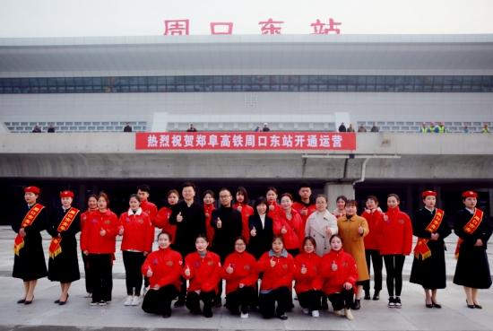 為慶祝鄭阜高鐵首發(fā),同時(shí)給乘客營造一個(gè)溫馨舒適的乘車環(huán)境,提升城市溫度,12月1日,在團(tuán)市委的組織下,來自周口職業(yè)技術(shù)學(xué)院的80名青年志愿者聚集在周口東站,開展志愿服務(wù)活動(dòng)。記者在現(xiàn)場(chǎng)看到,志愿者身穿統(tǒng)一服裝,分布在站前廣場(chǎng)、售票廳、進(jìn)站口、候車廳的各個(gè)角落,他們有的幫助乘客取票;有的引導(dǎo)乘客,幫助乘客進(jìn)站;有的則幫助車站工作人員分散客流量等。志愿者們積極熱情的工作態(tài)度,得到了廣大乘客的好評(píng)。