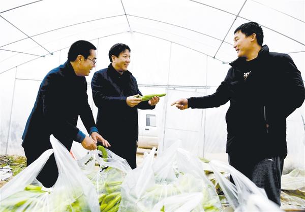 近日,周口報(bào)業(yè)傳媒集團(tuán)幫扶村——淮陽縣馮塘鄉(xiāng)劉莊村的扶貧蔬菜大棚最后一棚辣椒采摘上市。據(jù)了解,這里產(chǎn)的辣椒個(gè)頭大、口感好,很暢銷。圖為周口報(bào)業(yè)傳媒集團(tuán)黨委副書記、總編輯、周口日?qǐng)?bào)社總編輯顧玉杰(中)向種植戶了解辣椒銷售情況。 記者 梁照曾 攝