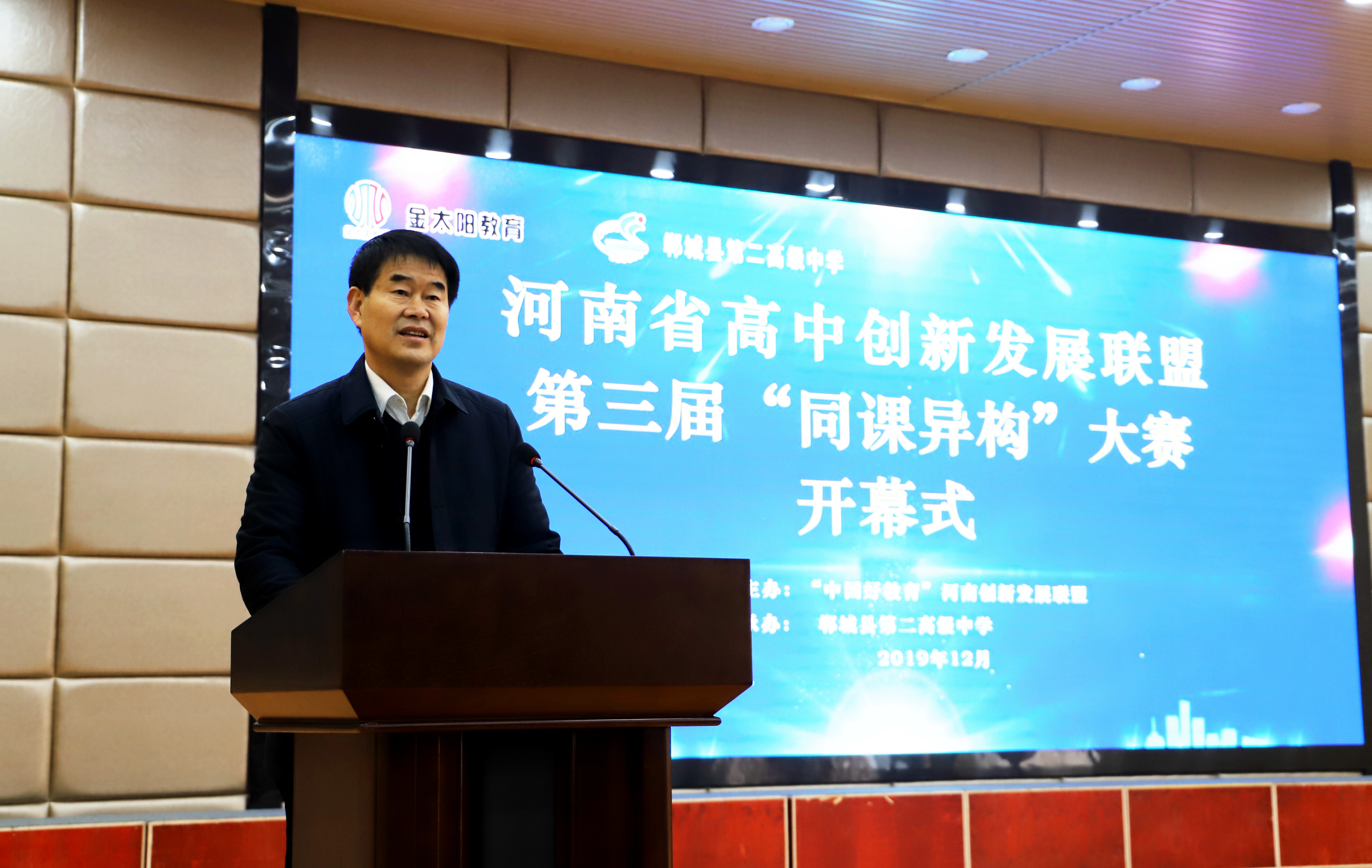 12月7日,由河南省高中創(chuàng)新發(fā)展聯(lián)盟主辦、鄲城二高承辦的全省第三屆“同課異構(gòu)”大賽開幕。鄲城縣教體局黨組書記、局長劉現(xiàn)營出席開幕式并致詞。來自全省15個(gè)縣市區(qū)的高中代表隊(duì)將在3天賽期內(nèi)各展風(fēng)采,共通思想、共享智慧、共融發(fā)展。