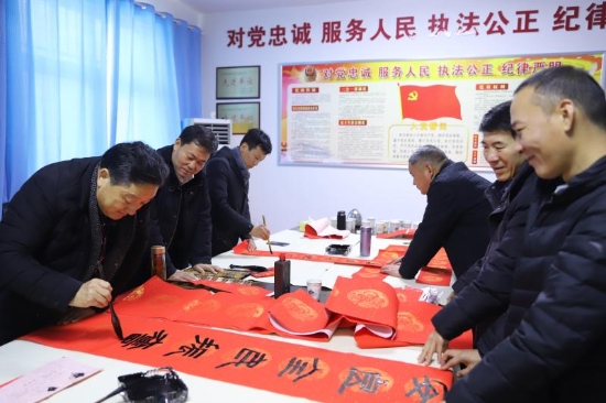 年末歲尾,我市書法家們到農(nóng)村、進(jìn)社區(qū)為群眾們義寫春聯(lián),成為節(jié)前一道靚麗風(fēng)景線。1月16日,我市6位知名書法家來到周口港區(qū)公安分局,特意為節(jié)日期間還要堅(jiān)守工作一線的公安民警、輔警現(xiàn)場寫春聯(lián),送祝福。