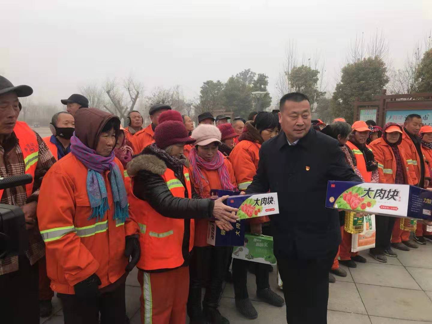 1月22日上午,天氣有些陰冷,葛杰帶著公司人員,拉著面粉、大米、牛奶、水果等慰問品來(lái)到失能老人、環(huán)衛(wèi)工人身邊,送去節(jié)日問候和新春祝福,大家心中頓感溫暖如春。