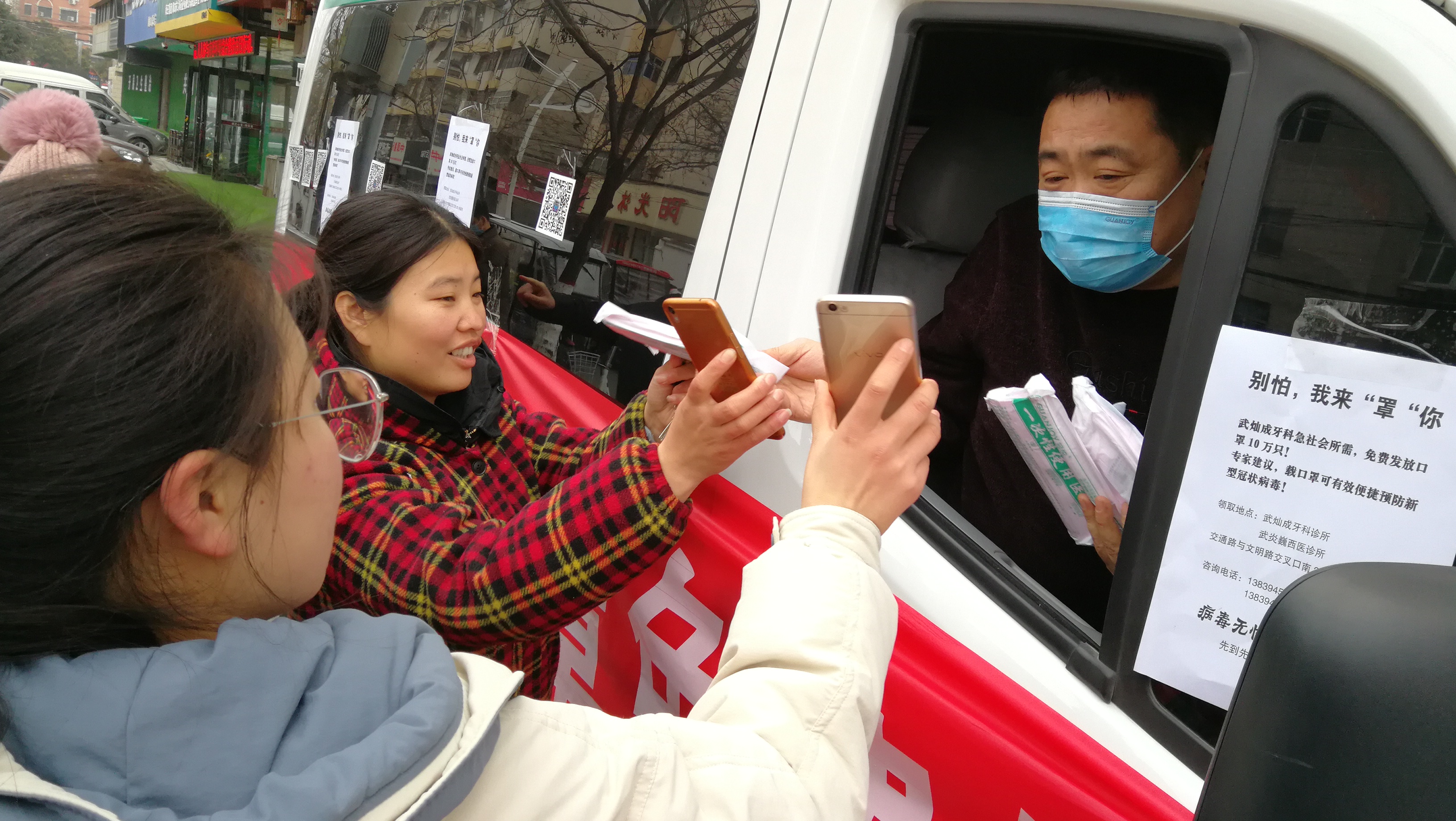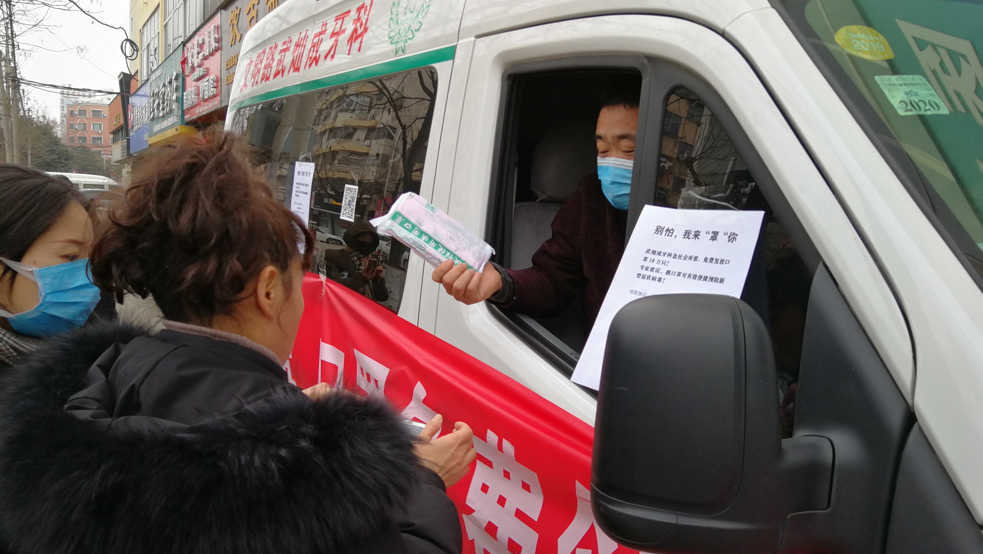 為應(yīng)對(duì)新型冠狀病毒肺炎和流感季,1月23日,文明路中段一家診所特采購了十萬只一次性使用醫(yī)用口罩,免費(fèi)發(fā)放給過路市民,受到人們的交口稱贊。記者 王映 攝