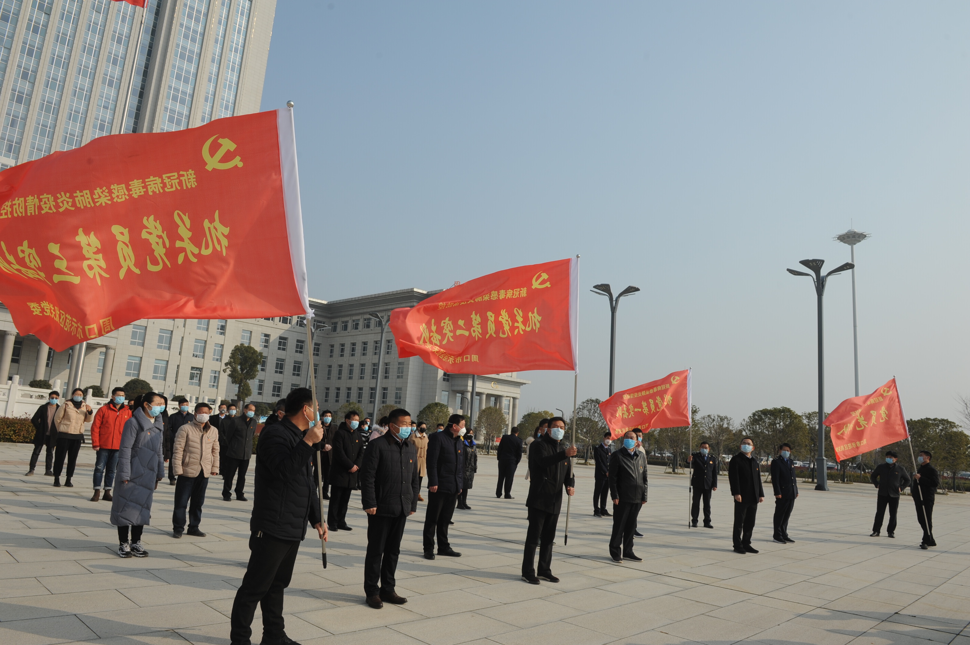 2月3日上午,在國旗下、黨旗前,示范區(qū)廣大黨員干部面對黨旗重溫入黨誓詞,充分展示了廣大黨員干部主動請戰(zhàn)到戰(zhàn)“疫”一線的決心和信心。隨后,區(qū)機關黨委相關領導向黨員先鋒隊和3個黨員突擊隊授予隊旗,希望他們堅守在一線、圓滿完成疫情防控的各項任務。