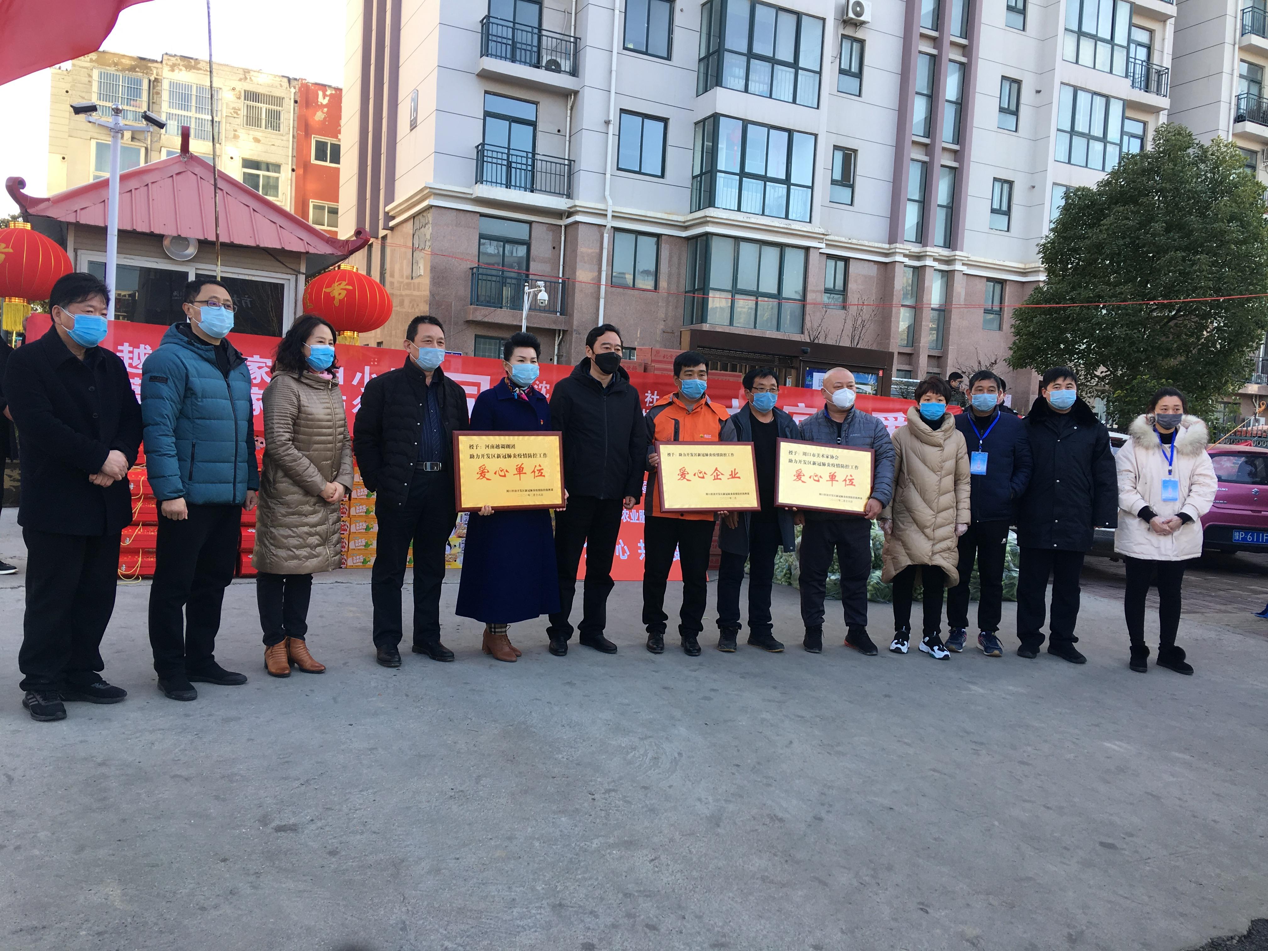3月16日,越調(diào)名家、河南越調(diào)劇團(tuán)團(tuán)長(zhǎng)申小梅偕同愛(ài)心企業(yè)為開(kāi)發(fā)區(qū)居家隔離群眾送來(lái)生活用品,助力開(kāi)發(fā)區(qū)疫情防控工作。開(kāi)發(fā)區(qū)管委會(huì)主任劉濤,管委會(huì)副主任谷靜、于杰參加捐贈(zèng)活動(dòng)。開(kāi)元路產(chǎn)業(yè)集聚區(qū)泰和公館小區(qū)于2月3日出現(xiàn)一起疑似病例,2月4日被確診為新冠肺炎。為有效切斷病毒傳播渠道,經(jīng)開(kāi)發(fā)區(qū)和市新冠肺炎疫情防控指揮部溝通,決定對(duì)泰和公館小區(qū)居民實(shí)行居家隔離,開(kāi)發(fā)區(qū)在泰和公館小區(qū)門口設(shè)置卡點(diǎn),要求小區(qū)所有人員居家隔離。申小梅等心系被隔離群眾,積極聯(lián)系沈丘金豐公社、宛丘生態(tài)農(nóng)場(chǎng)、國(guó)風(fēng)藝術(shù)中心三家企業(yè),決定對(duì)他們實(shí)施愛(ài)心捐助。當(dāng)日,申小梅偕同沈丘金豐公社、宛丘生態(tài)農(nóng)場(chǎng)、國(guó)風(fēng)藝術(shù)中心,為泰和公館小區(qū)居民送來(lái)了小面包30箱、熱狗腸20箱、八寶粥30箱、方便面37箱、青菜50包。 開(kāi)發(fā)區(qū)管委會(huì)主任劉濤對(duì)申小梅等愛(ài)心人士的義行善舉表示感謝,表示有各界的大力支持,有廣大群眾的積極支持,有一線工作人員的努力付出,開(kāi)發(fā)區(qū)一定能夠戰(zhàn)勝疫情,奪取疫情阻擊戰(zhàn)的最后勝利。 開(kāi)發(fā)區(qū)疫情防控指揮部為河南越調(diào)劇團(tuán)、市美術(shù)家協(xié)會(huì)和愛(ài)心企業(yè)頒發(fā)“助力開(kāi)發(fā)區(qū)新冠肺炎疫情防控工作愛(ài)心單位(企業(yè))”牌匾。我市著名畫(huà)家?guī)熜欣⒓泳栀?zèng)活動(dòng)。