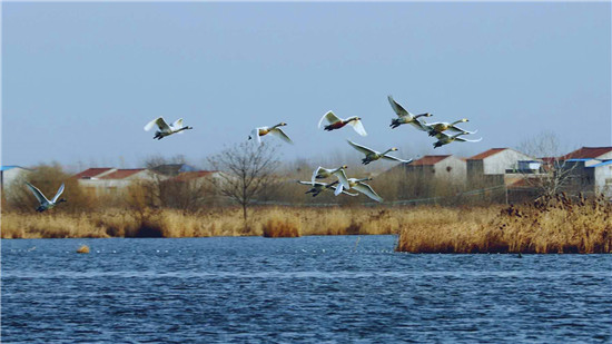 據(jù)在淮陽(yáng)龍湖北岸疫情卡點(diǎn)值守的安保人員王寶峰介紹,除了這一批50多只白天鵝來(lái)龍湖歇腳外,幾天前的2月18日,還有100多只白天鵝在太昊陵前廣場(chǎng)上空盤(pán)旋一圈后飛到了龍湖,在龍湖停留一天后向北方遷徙了。