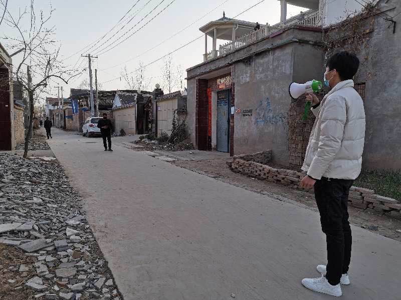 小喇叭,大溫情?!案魑淮迕?,大家新年好,我是咱老冢鎮(zhèn)政府的工作人員,也是咱李鳳行政村的包村干部,最近新型冠狀病毒疫情形勢嚴(yán)峻,請各位村民盡量不要出門......”師東光每天都會(huì)帶上夜間充滿電的高音小喇叭,每天上午、下午都要在村里的大街胡同走上一圈,用小喇叭宣傳勸阻大家盡量不要出門,不要在村內(nèi)聚集扎堆聊天、打牌。連續(xù)多日,他用小喇叭傳送著大溫暖。