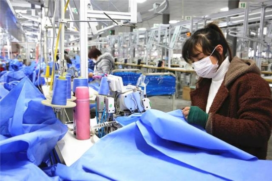 “進(jìn)廠員工每天都要佩戴口罩,車間里一天三次消毒,身體不適要及時(shí)向村委會匯報(bào)……”2月22日,安靜了多日的項(xiàng)城市三店鎮(zhèn)黃莊行政村“扶貧車間”里又熱鬧了起來,30多名附近村的村民熟練地操作著縫紉機(jī),隨著清脆的機(jī)杼聲,一捆捆丙綸布匹滑下生產(chǎn)線。