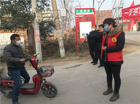 臘月三十那天,餃子剛剛包好,王愛月同志臨危受命,根據(jù)鎮(zhèn)黨委安排部署,果斷迅速組織布防嚴(yán)控,立即進(jìn)入疫情防控第一線。鄉(xiāng)鎮(zhèn)召集各村黨支部書記召開會議,分析研判嚴(yán)峻形勢,要求各村支部發(fā)揮基層組織“戰(zhàn)斗堡壘”作用,立即摸清情況,穩(wěn)定群眾情緒,增強(qiáng)群眾信心;鎮(zhèn)中心衛(wèi)生院給各村醫(yī)安排防疫工作。會后,村兩委班子第一時間成立了奉母鎮(zhèn)后邵村防控新冠肺炎疫情領(lǐng)導(dǎo)小組,王愛月?lián)胃苯M長,協(xié)助支部書記制定全村防控應(yīng)急處置方案,負(fù)責(zé)處理疫情持續(xù)期間各類防控工作,結(jié)合后邵村實(shí)際,從疫情摸排、防控物資采購、應(yīng)急值守、各場所消毒、道路設(shè)卡等各方面全面做好準(zhǔn)備。全村組建6個排查組對全村居民逐戶排查,她親自帶隊(duì)逐戶排查所有外來人員,確保不漏一戶一人。之后,建立排查臺賬,及時準(zhǔn)確掌控疫情動態(tài),為每位務(wù)工返鄉(xiāng)人員發(fā)放了注意事項(xiàng)告知書和宣傳單,對外出返鄉(xiāng)人員落實(shí)了包戶責(zé)任制。同時建立防控微信群,實(shí)時掌握他們的身體情況,解答他們的疑惑,全力做好心理疏導(dǎo)工作,切實(shí)解決鄉(xiāng)里鄉(xiāng)親的困難問題。