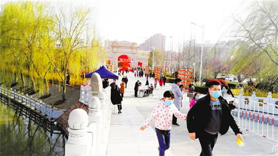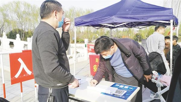 本報(bào)訊 3月10日,天氣晴朗,暖意融融,關(guān)閉一個(gè)多月的周口公園開園迎客第二天,記者在周口公園看到,游客都戴著口罩,經(jīng)登記、測(cè)溫后依次入園,園內(nèi)秩序井然。