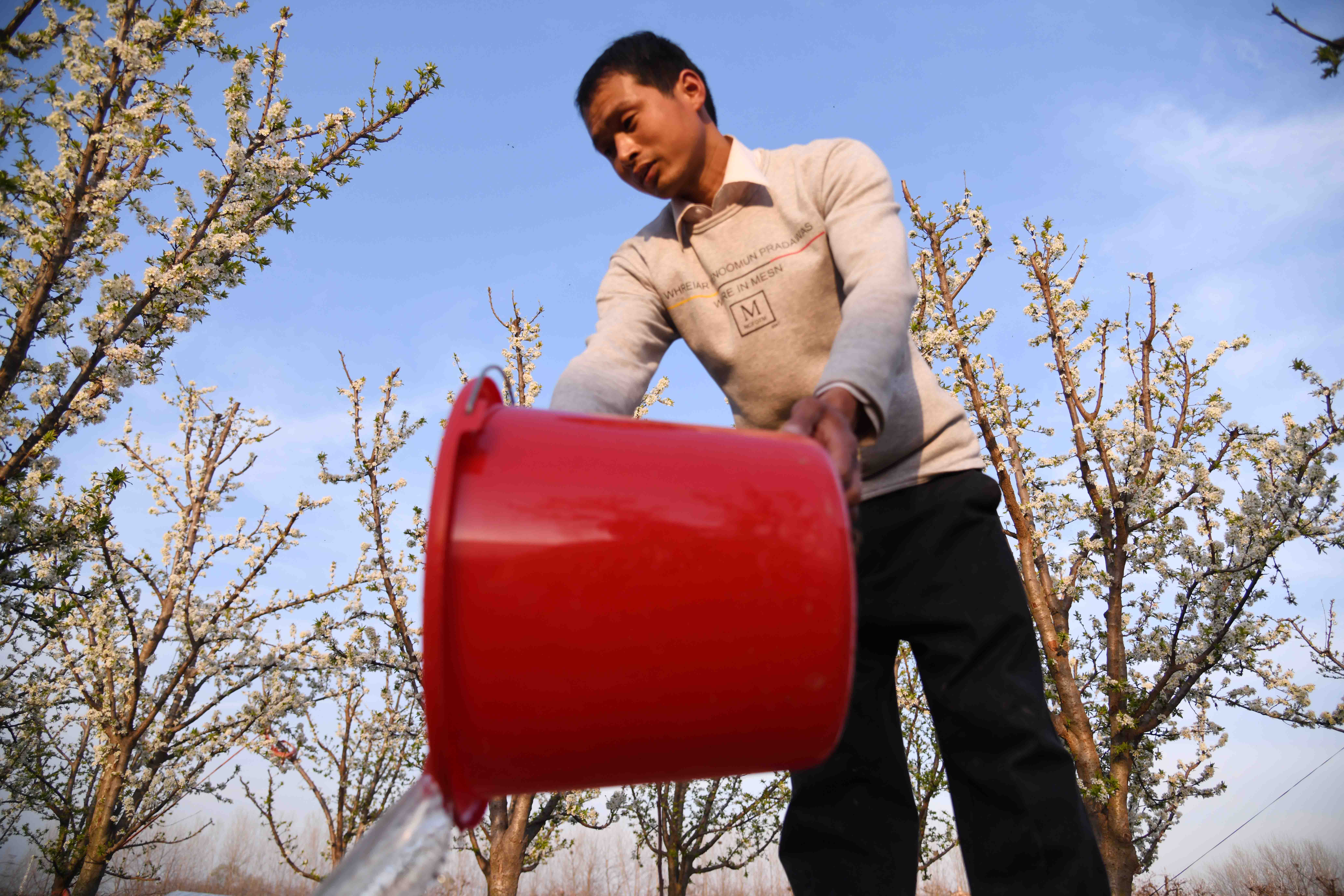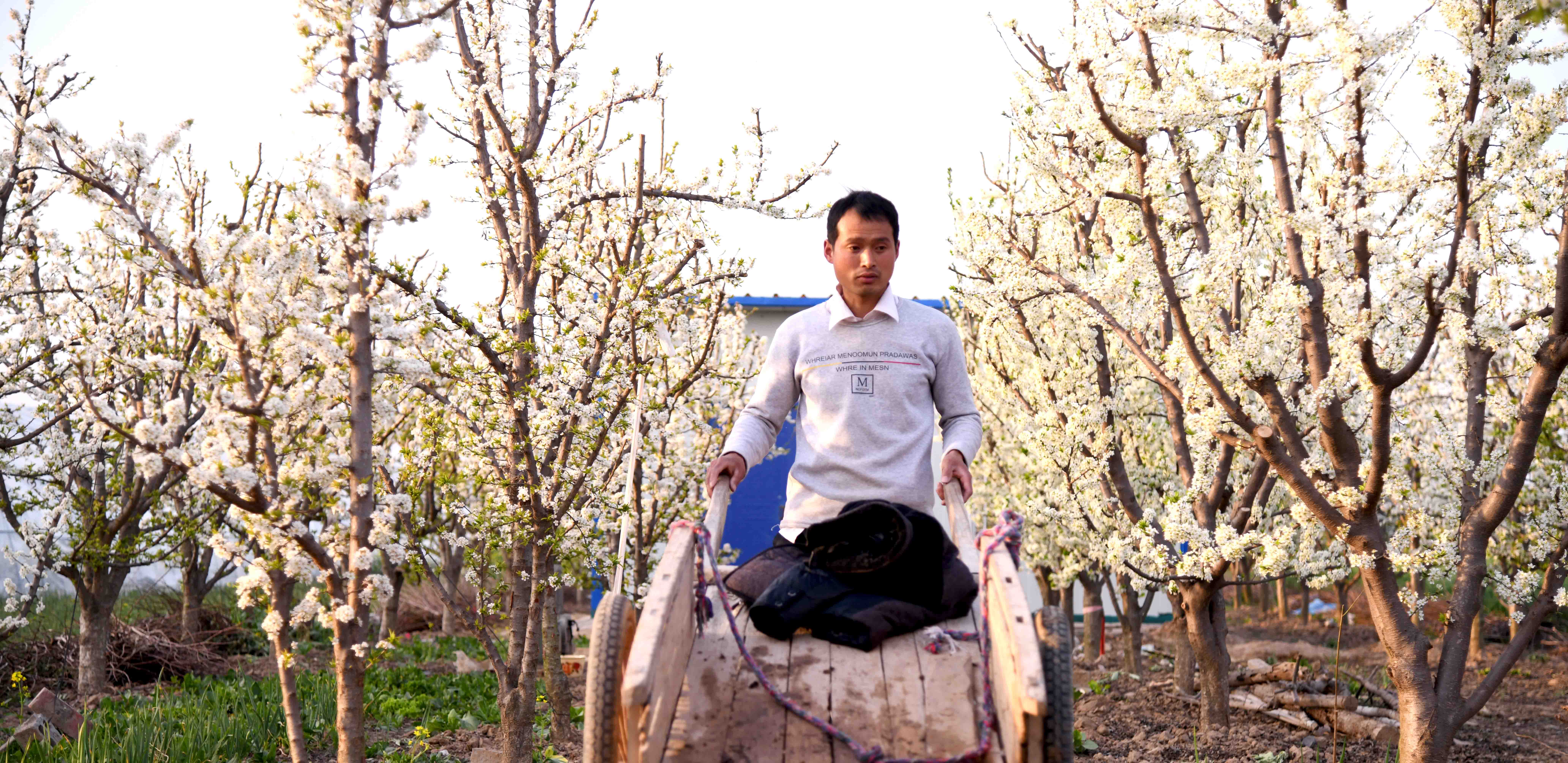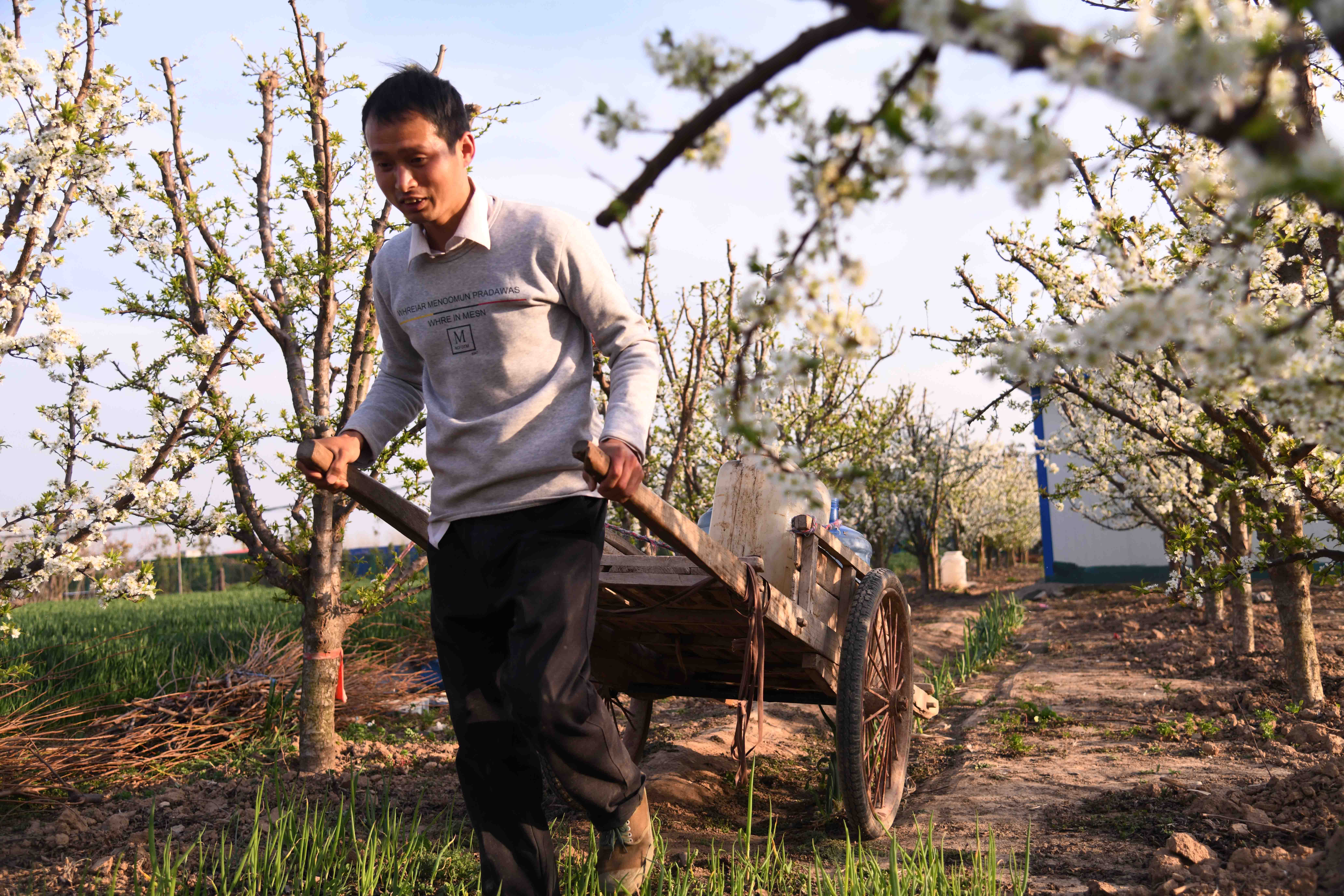 記者在一家果農(nóng)的果園里看到,果園在春陽下,李子花滿園濃放,滿樹花朵潔白如玉,芳香四溢,宛如置身人間仙境。果農(nóng)正忙著為果樹澆水,侍弄新栽的果苗。何莊村果園有三四百畝,種植有桃樹、蘋果樹、梨樹、李子樹、柿樹等,是附近有名的果樹種植村,成為村里的重要副業(yè),每年夏秋季節(jié),這里瓜果飄香,吸引很多城里人和附近村民前來購買。