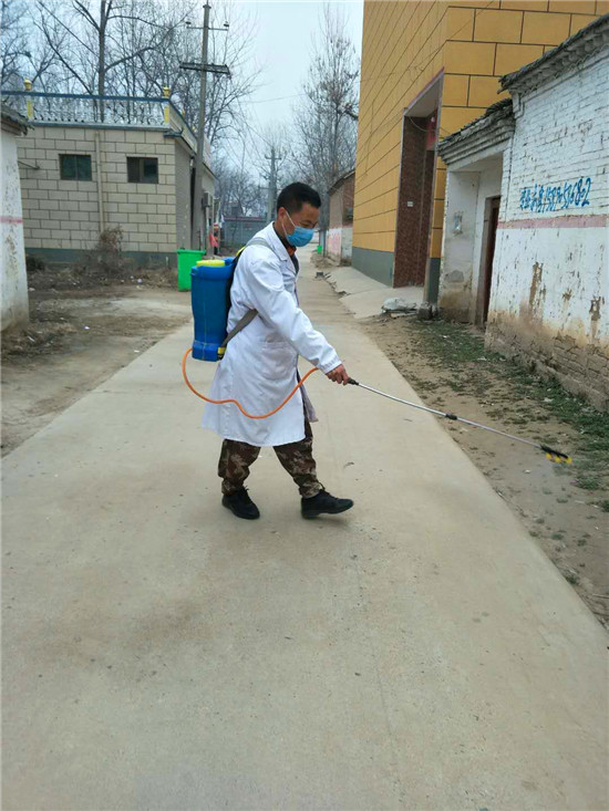 他不是為村民分發(fā)消毒液,就是對村主干道、公共衛(wèi)生間每天堅持消毒,雙腿累腫了,嘴唇起了泡,可他咬牙堅持。村委成員見他每天像個陀螺一樣高速的運轉(zhuǎn)著,讓他休息幾天,可楊建崗說啥也不同意。每天還是堅持著值班,發(fā)現(xiàn)問題及時糾正,對有些不理解的村民進行說服教育。除了值班,他還與其他志愿者一起做好流動崗,發(fā)現(xiàn)有扎堆的村民立即勸阻,發(fā)現(xiàn)有不戴口罩者一律勸回,對亂走親戚的村民堅決說“不”。