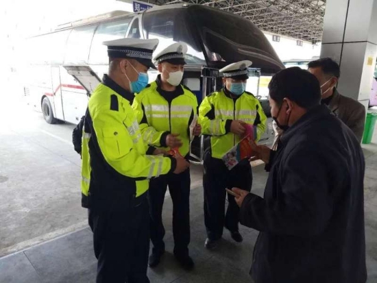 檢查中,民警向客運(yùn)車輛駕駛員、乘客發(fā)放《客運(yùn)企業(yè)疫情防護(hù)知識(shí)》《珍愛生命安全出行》《致駕駛員的一封信》等交通安全宣傳資料。