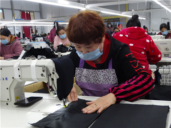 疫情不能放松,復(fù)工復(fù)產(chǎn)也要穩(wěn)妥推進。連日來,沈丘縣婦聯(lián)鼓勵引導(dǎo)和組織廣大婦女群眾科學(xué)安全有序助力企業(yè)、農(nóng)業(yè)合作社、扶貧車間等復(fù)工復(fù)產(chǎn),確保戰(zhàn)"疫"扶貧兩不誤,為統(tǒng)籌推進防疫戰(zhàn)和脫貧攻堅戰(zhàn)貢獻巾幗力量。圖為沈丘縣周營鎮(zhèn)馬營村慧恩服飾有限公司來料加工扶貧車間內(nèi),女工們正在生產(chǎn)線上加工訂單服裝。