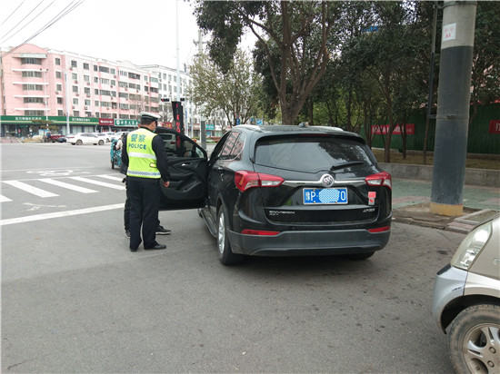 3月27日8時30分許,記者在周口中心城區(qū)交通大道與大慶路交叉口附近看到,值勤交警將兩輛車牌尾號為5和0的車輛攔下,對其進行處理。當日(星期五),按照相關(guān)規(guī)定,我市中心城區(qū)對車牌尾號為5和0的車輛限行。記者張洪濤攝