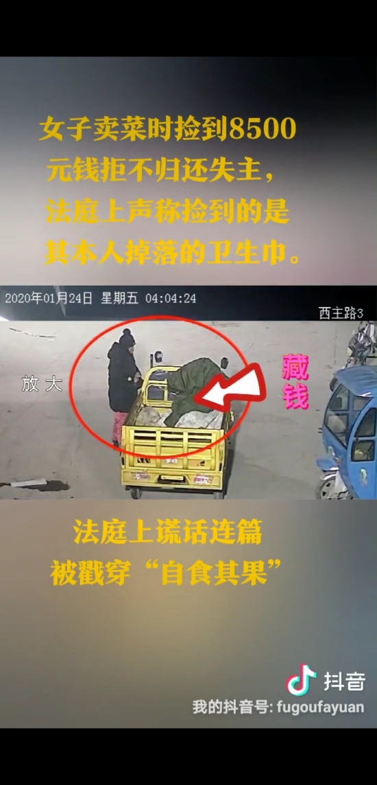 庭審中,面對(duì)監(jiān)控錄像顯示楊某彎腰撿拾錢款的畫面,楊某本人百般抵賴、謊話連篇,拒不承認(rèn)撿到錢款。當(dāng)法官詢問楊某如何解釋監(jiān)控畫面中顯示其撿到了白色包裹時(shí),楊某居然說是彎腰撿東西了,但撿的不是錢,撿的是她自己的衛(wèi)生巾。法官再次向楊某告知當(dāng)事人作虛假陳述的后果及應(yīng)當(dāng)承擔(dān)的法律責(zé)任,楊某仍一口咬定撿到的不是錢,撿的是衛(wèi)生巾。法官遂傳喚現(xiàn)場目擊證人出庭作證,兩名證人依法進(jìn)行了法庭宣誓,明確表示見到了楊某撿起地上一包錢并放入其本人包中的行為。此時(shí),原告又提交了一份錄音證據(jù),法官予以當(dāng)庭播放。錄音清晰顯示,楊某在電話中曾經(jīng)承認(rèn)1月24日早上撿到錢款的行為。