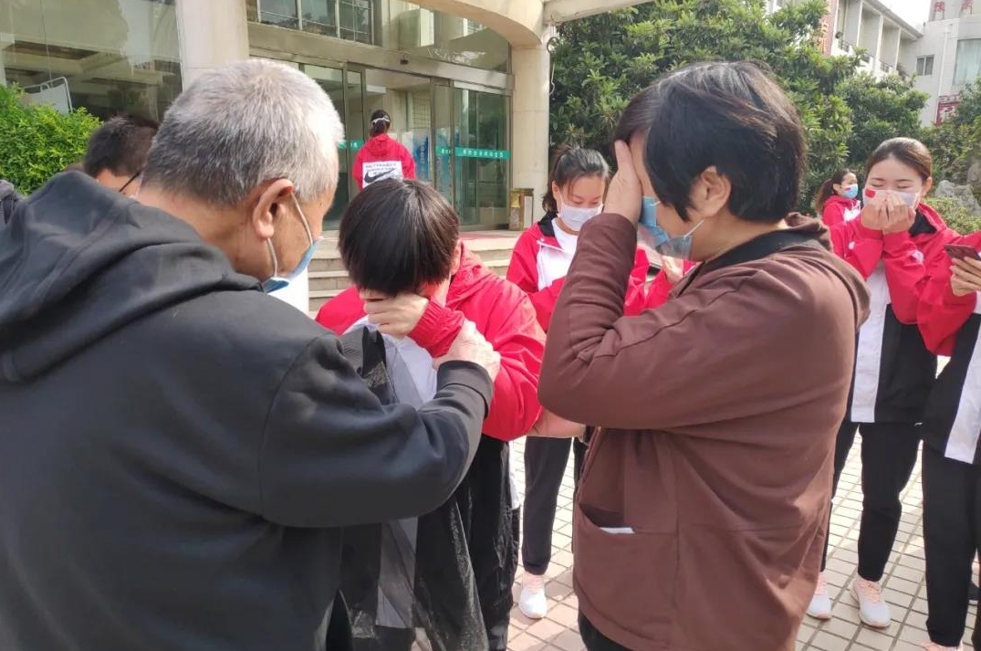 儀式結(jié)束后,醫(yī)療隊(duì)隊(duì)員和家人、同事相擁相抱,現(xiàn)場(chǎng)一片沸騰……終于見(jiàn)到了思念已久的家人。