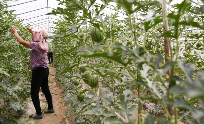 西華遲營(yíng)鄉(xiāng)百農(nóng)園產(chǎn)業(yè)扶貧基地內(nèi)的西瓜