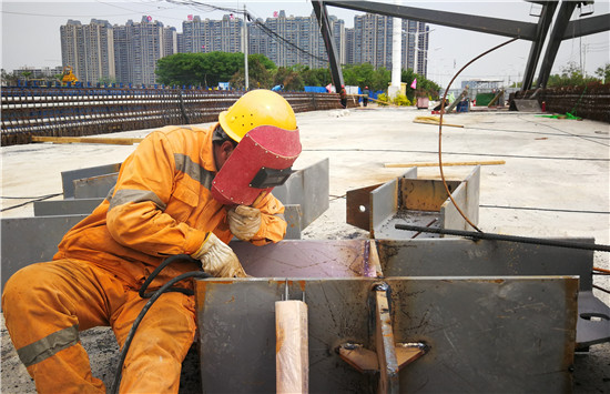 4月21日上午,我市流沙河泰山路橋施工現(xiàn)場(chǎng)一片忙碌景象,工人們各司其職,為流沙河泰山路橋早日投入使用加緊施工。據(jù)工地施工管理員介紹,流沙河泰山路橋的主體工程已基本完工。大橋建成后,和周邊的景觀(guān)與功能完美結(jié)合,做到橋、水、沿岸景觀(guān)和諧統(tǒng)一,為市區(qū)增添一個(gè)景觀(guān)。