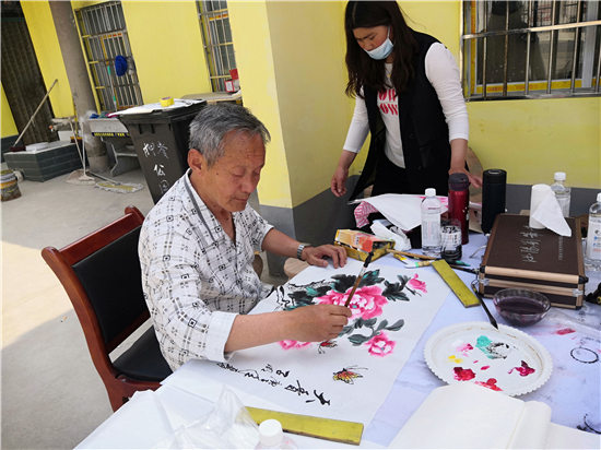 5月4日上午,鄲城縣汲水鄉(xiāng)押嶺行政村村室大院格外熱鬧,幾名書法家正被群眾團(tuán)團(tuán)圍住,原來是鄲城縣老年書畫研究會(huì)會(huì)長曾慶祥帶領(lǐng)書畫名家來押嶺開展送文化下鄉(xiāng)活動(dòng)。