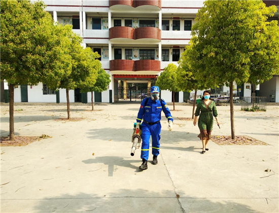 5月13日,我市中心城區(qū)低年級小學生將迎來返校復課。為保障孩子們身體健康,5月10日,周口市六一路小學再次邀請周口市藍天救援大隊工作人員對校園重點部位進行全面消毒殺菌,為低年級師生順利返校復課提供健康保障。(記者 黃佳 通訊員 劉芝 攝)