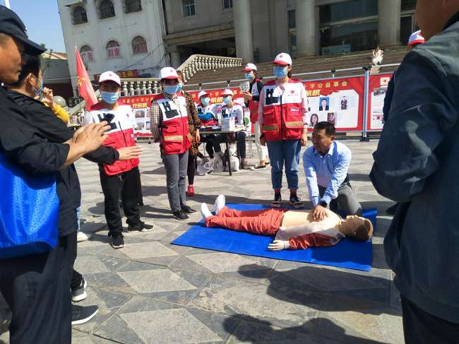 與此同時,該縣紅十字會還現(xiàn)場對廣大群眾傳授心肺復(fù)蘇等急救方法。