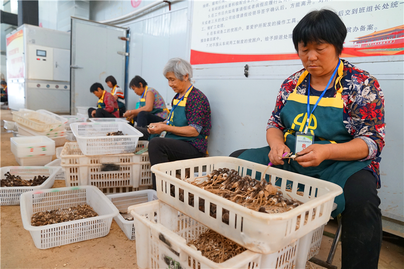 在大許寨鎮(zhèn)羅古洞村華瑞農(nóng)牧食用菌基地的包裝車(chē)間內(nèi),60多歲的村民王梅芝在和其他工人們一起包裝羊肚菌。她說(shuō),自己每月有1000多元的收入、“不用外出,在家門(mén)口掙錢(qián),還能照顧孫子?!蓖趺分フf(shuō)。