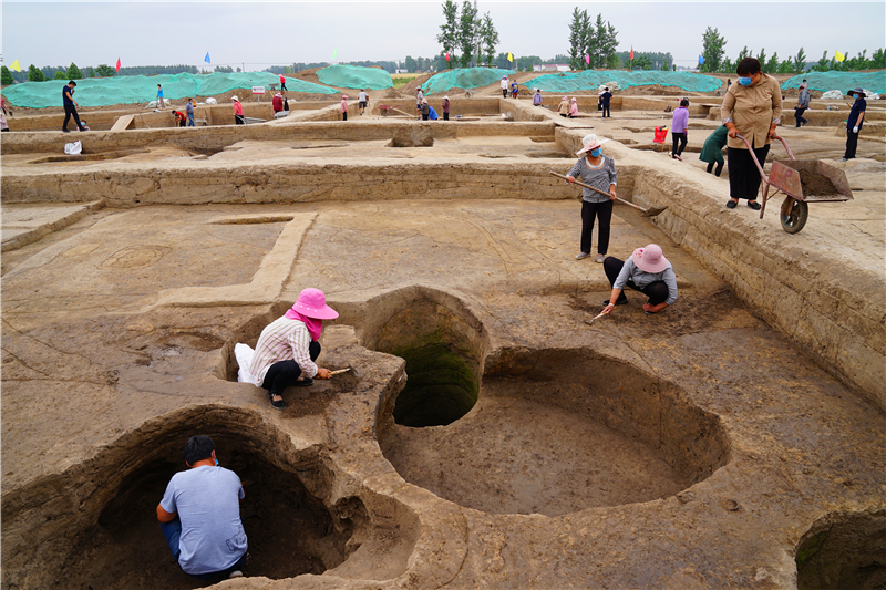 大家首先來(lái)到時(shí)莊遺址發(fā)掘現(xiàn)場(chǎng)。該遺址屬于龍山文化遺存,就現(xiàn)有發(fā)掘情況看,遺址規(guī)模宏大、結(jié)構(gòu)獨(dú)特,在全國(guó)范圍也屬罕見(jiàn),是近年來(lái)我國(guó)考古的重要發(fā)現(xiàn)。