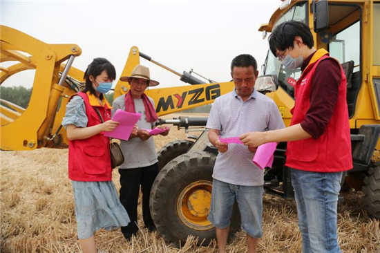 “師傅,在收麥的時候一定要看清警示標識,防止誤碰電桿、拉線引發(fā)事故……”6月3日,在太康縣王集鄉(xiāng)李占榮村的麥田里,太康縣供電公司工作人員提醒收割機駕駛員注意保護電力設施 。