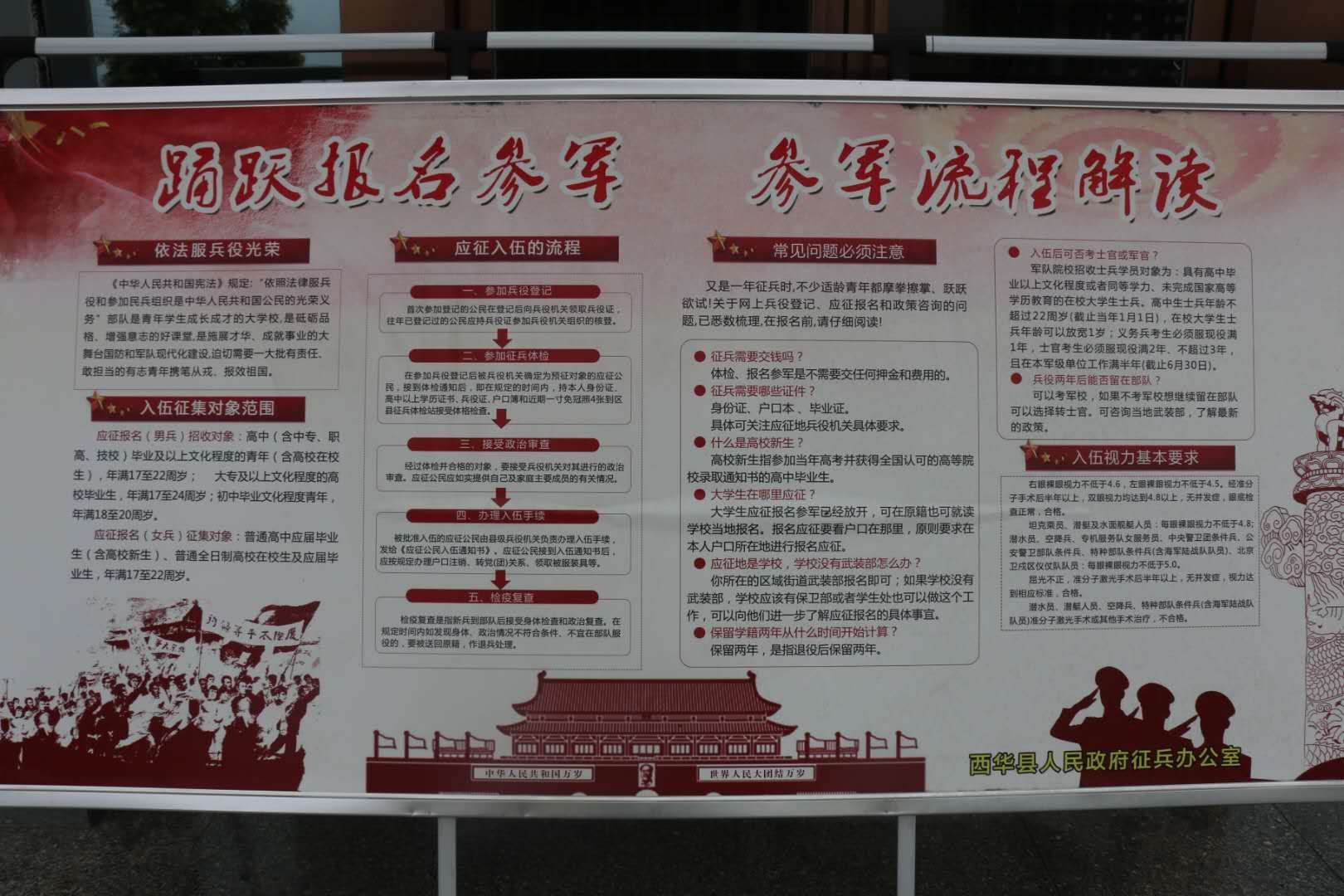 為做好大學生征兵工作,西華縣人武部認真開展了多層次、全方位的宣傳發(fā)動??h人武部多次召開黨委會,分析大學生征兵形勢,研究制定層層宣傳發(fā)動方案。扎實開展大學生兵員潛力調查工作,挖掘大學生兵員潛力,及時登記造冊。全縣成立了60支由縣人武部干部職工、鄉(xiāng)鎮(zhèn)專武干部、村民兵干部參加的大學生征兵宣傳小分隊,分頭對轄區(qū)內在家的各級各類院校畢業(yè)生和在校生,進行挨家挨戶、面對面的宣傳,把《2020年西華縣大學生征兵宣傳冊》發(fā)放到每一名大學生手中,做到一人不漏。為其算好“經濟帳”、“ 政治帳”、“ 前途帳”。把針對大學生青年制定的最新調整的優(yōu)惠政策宣傳到位,最大限度發(fā)掘大學生征集潛力。同時,該縣把做深做細大學生征兵宣傳報名工作,作為完成征兵任務的重要基礎,積極轉變思路,創(chuàng)新工作方法,靈活運用各種宣傳手段,千方百計增強宣傳發(fā)動的針對性、實效性。該部除采取散發(fā)傳單、懸掛橫幅、制作板報、張貼標語、現(xiàn)場咨詢等傳統(tǒng)方式外,還充分利用廣播、電視、微信、短信、電子屏等傳媒手段增強宣傳效果,做到廣播電視里有音有像,微信短信電子屏有征兵信息滾動發(fā)布,墻報上有文,橫幅標語上有宣傳口號,提高全民政治意識和國防觀念,切實讓大學生入伍優(yōu)惠政策宣傳不留死角。該部充分利用對現(xiàn)役軍人家庭逐戶走訪解難、贈送懸掛“光榮軍屬”牌匾、敲鑼打鼓送喜報等活動,在全社會大力營造“一人參軍、全家光榮”的鮮明導向,讓尊崇軍人的號召在西華縣落地,讓當兵光榮的傳統(tǒng)在群眾心中扎根,從而激勵大學生青年積極報名參軍的報國熱情。