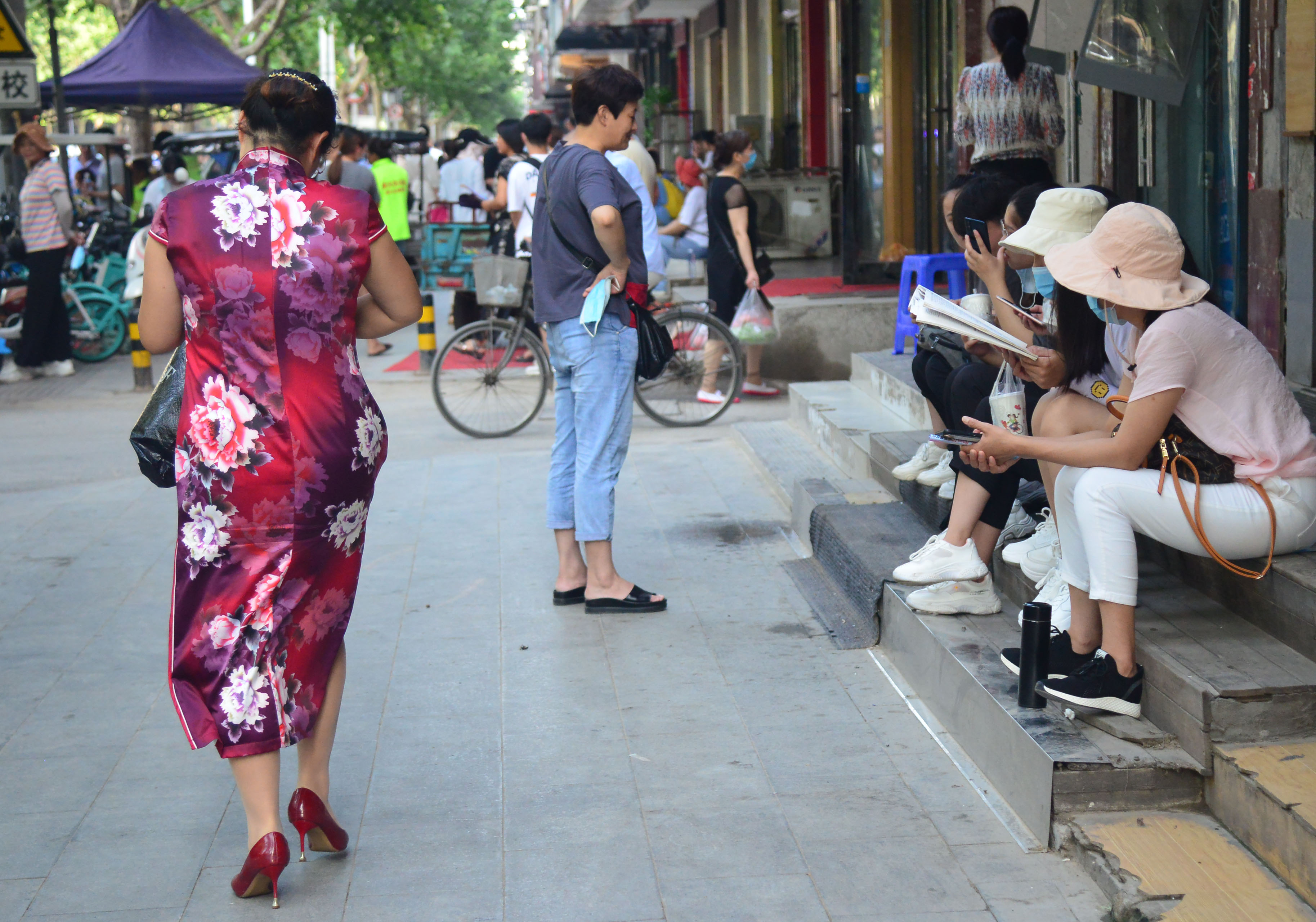 7月7日是高考第一天 ,在考場外,記者見到不少考生媽媽們穿上各式旗袍陪同考生來到考場外等待。據(jù)了解,這些考生媽媽是為了讓孩子第一天就旗開得勝的好寓意,她們特意穿起了平日不常穿的旗袍,支持自己的孩子,為他們加油。