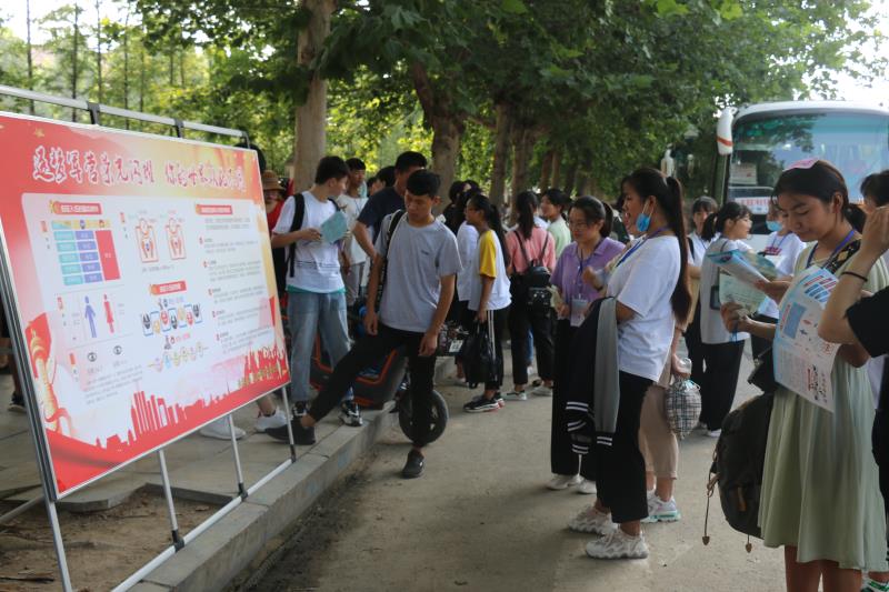 在該縣各標(biāo)準(zhǔn)化高考考點(diǎn)征兵宣傳現(xiàn)場(chǎng),人頭攢動(dòng)、熱鬧非凡?!昂媚袃?,來當(dāng)兵”大紅條幅和“把忠心獻(xiàn)給祖國,把青春獻(xiàn)給軍營”“參軍報(bào)國盡義務(wù),熱血青年競風(fēng)采”的大型宣傳牌格外引人注目,內(nèi)容豐富的征兵宣傳展板一字排開,《征兵宣傳手冊(cè)》《大學(xué)新生應(yīng)征入伍宣傳單》《征兵政策宣傳解讀手冊(cè)》等征兵宣傳資料擺放在咨詢臺(tái)上一目了然,吸引了眾多的考生和家長駐足觀看,圍著咨詢臺(tái)詢問有關(guān)征兵事宜。
