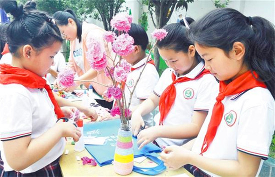 放暑假了,許多中小學(xué)生根據(jù)自己的愛好,報名參加了足球、美術(shù)、舞蹈等興趣班。這些興趣班使孩子們的假期生活變得豐富多彩,也讓他們更充實、更自信、更快樂。圖為商水縣新城學(xué)校的小學(xué)生假期里學(xué)習(xí)手工制作。
