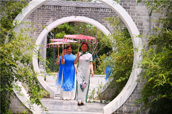 周口森林公園經(jīng)過近年的建設(shè)已經(jīng)成為市區(qū)休閑的一處好去處,風(fēng)景優(yōu)美,園林幽深,目前,盡管森林公園附近道路施工,進(jìn)出還不方便,但是仍吸引著很多居民前去休閑游玩,愛美的大媽們更是在這里秀一把,7月16日上午,來自市區(qū)模特隊(duì)的大媽們,穿著靚麗的旗袍,在荷葉飄香、假山園林秀林深處,開心地進(jìn)行一場(chǎng)模特秀。