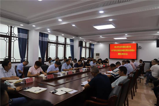 8月14日,周口市生態(tài)環(huán)境局太康召開生態(tài)環(huán)境系統(tǒng)深化以案促改制度化常態(tài)化推進(jìn)會(huì)暨警示大會(huì),打造嚴(yán)明生態(tài)環(huán)境鐵軍太康分局再推進(jìn)??h紀(jì)委監(jiān)委副科級(jí)干部邱紅衛(wèi)、派駐人大機(jī)關(guān)紀(jì)檢組組長張煜華出席會(huì)議并講話。局黨組全體班子成員、局機(jī)關(guān)及二級(jí)機(jī)構(gòu)副股級(jí)以上干部職工、綜合執(zhí)法大隊(duì)各中隊(duì)中隊(duì)長參加會(huì)議。局黨組書記、局長張衛(wèi)民對(duì)全局以案促改警示工作作具體安排。