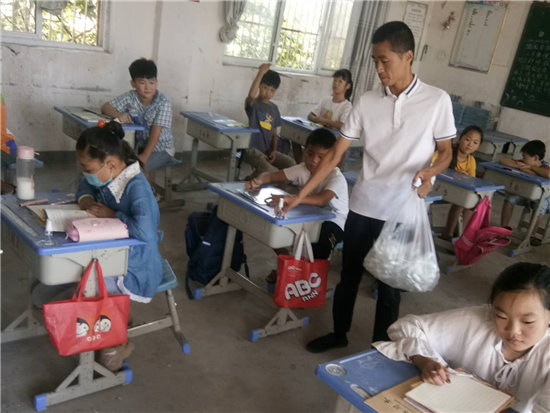 現(xiàn)場活動中,兩位老師拿出自己的支教補貼購買了150個噴壺和酒精,逐一發(fā)放到各個班級,并進(jìn)行了疫情防控常識及其每天酒精消毒方法講解,同時和學(xué)校老師一道對校園和教室進(jìn)行了消毒等疫情防控工作,積極做好了開學(xué)前的各項準(zhǔn)備。