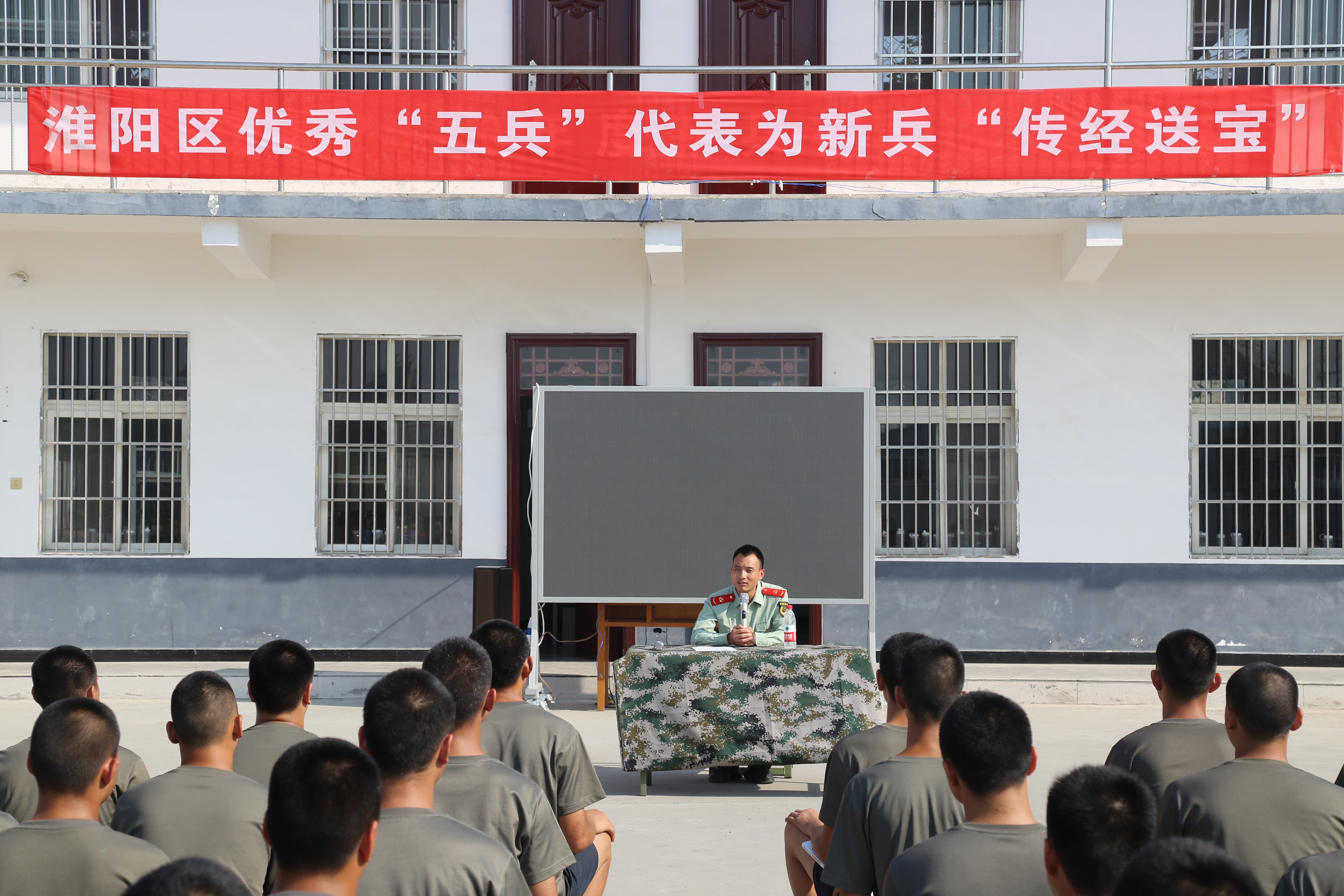 為了進一步激發(fā)新兵的工作訓練熱情,堅定新戰(zhàn)士立足軍營,獻身國防的信念。9月8日,在年度新兵即將起運之際,淮陽區(qū)人武部組織優(yōu)秀“五兵”代表(參戰(zhàn)老兵、現(xiàn)役士兵、退役士兵)為新兵“傳經送寶”活動,300余名新兵一起聆聽優(yōu)秀“五兵”代表精彩講課。