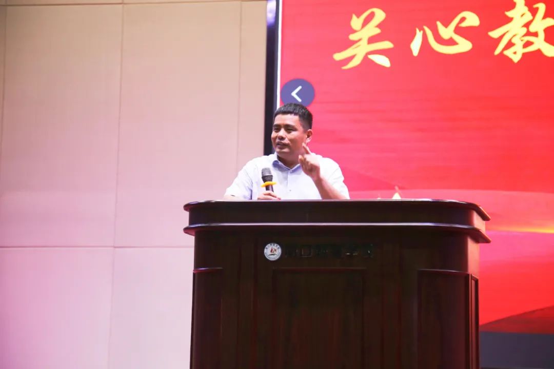 新星學(xué)校董事長劉永文作回憶了自己辦學(xué)的艱辛歷程和初心,講了自己作為一名老師至今對教師崗位的眷戀和熱愛;表達(dá)了對教師這個群體的深情,表達(dá)了他對教師群體要盡綿薄之力的心愿。他的講話真誠坦率,侃侃而談,贏得了一陣陣掌聲。
