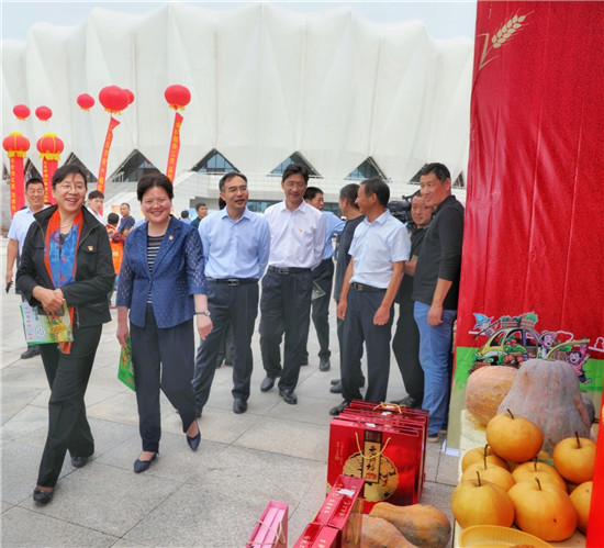 在固城鄉(xiāng)農(nóng)副產(chǎn)品展臺(tái),談起豐收節(jié),李報(bào)中滿臉喜悅。今年他承包的200多畝蘆筍種植基地大豐收,在致富的同時(shí),還吸納十幾名貧困戶在基地務(wù)工,帶動(dòng)他們脫貧致富?!斑@是我們農(nóng)民自己的節(jié)日,借著豐收節(jié)不僅能推介農(nóng)副產(chǎn)品,大家還能跟著熱鬧放松,是一舉多得的好事情。”李報(bào)中高興地說(shuō)。