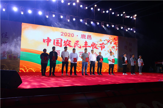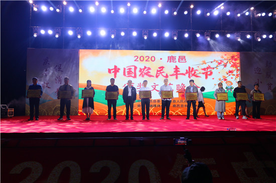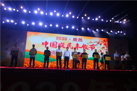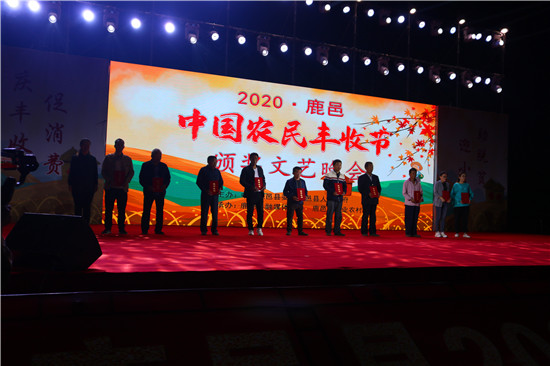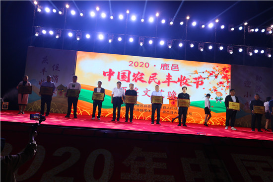 9月22日晚,由中共鹿邑縣委、鹿邑縣人民政府主辦的2020年鹿邑縣農(nóng)民豐收節(jié)文藝晚會(huì)在鹿邑縣文化中心廣場(chǎng)舉辦。晚會(huì)現(xiàn)場(chǎng)頒布了鹿邑縣“十佳家庭農(nóng)場(chǎng)”“十佳農(nóng)民合作社”“十佳特色農(nóng)產(chǎn)品品牌”“十佳返鄉(xiāng)創(chuàng)業(yè)脫貧致富帶頭人”“十佳脫貧致富先進(jìn)個(gè)人”五項(xiàng)獎(jiǎng)項(xiàng),40名新型農(nóng)民(農(nóng)場(chǎng)、合作社)代表和10個(gè)特色農(nóng)產(chǎn)品品牌獲殊榮,他們用行動(dòng)和產(chǎn)品充分展示了全縣現(xiàn)代農(nóng)業(yè)在過去一年中取得的輝煌成果。縣領(lǐng)導(dǎo)雷申、楊所超、侯自峰、王曉征、張國(guó)慶、肖西國(guó)等出席豐收節(jié)晚會(huì),并為獲獎(jiǎng)?wù)哳C發(fā)榮譽(yù)證書和獎(jiǎng)牌。