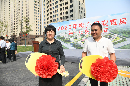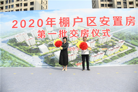 9月27日,2020年棚戶區(qū)安置房第一批交房,德和家園業(yè)主代表喜領(lǐng)鑰匙。記者 王映 攝 (③2)