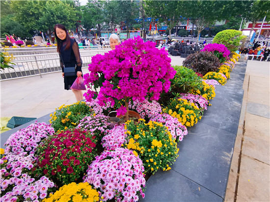 9月27日,在中心城區(qū)五一文化廣場,市民在鮮花盛開的花壇走過?!笆弧迸R近,五一文化廣場裝扮一新,各色花卉和造型樹木分布在廣場的各個方位的花壇內(nèi),吸引市民觀賞拍照。②9
