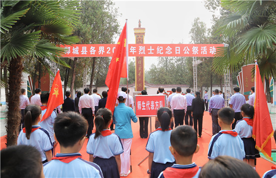 鄲城大地存浩氣,蒼松翠柏祭英烈。9月30日,鄲城縣在烈士陵園舉行2020年烈士紀(jì)念日公祭活動,市人大常委會副主任、鄲城縣委書記羅文閣,縣長李全林,縣人大常委會主任李建軍,縣政協(xié)主席王偉等縣四個班子領(lǐng)導(dǎo),全縣副處級以上領(lǐng)導(dǎo)干部,縣直各單位負(fù)責(zé)人,23個鄉(xiāng)鎮(zhèn)辦負(fù)責(zé)人,退役軍人代表、師生代表和社會各界人士,一同祭奠革命先烈,激勵全縣上下不忘初心、牢記使命,為鄲城縣高質(zhì)量發(fā)展而不懈奮斗。