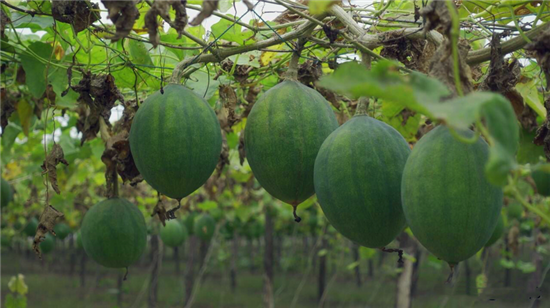 秋天是收獲的季節(jié),到處彌漫著豐收的氣息。寧平鎮(zhèn)瓜簍種植基地的瓜蔞蛋兒也由嫩綠變成橘黃,果實(shí)累累,煞是喜人,吸引許多客商前來采購,成為群眾增收致富的“黃金果”。
