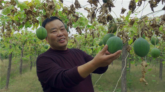 “瓜蔞,又叫吊瓜、野葫蘆,多年生藤本植物,塊根圓柱狀,富含淀粉。它渾身是寶,果子能入藥,也能加工食用?!苯?,在鄲城縣寧平鎮(zhèn)瓜簍種植基地,寧平鎮(zhèn)黨委書記徐汝敏看著滿眼豐收景象的瓜簍,臉上滿是笑容。