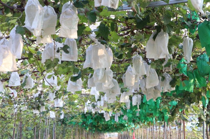 隨著示范引領(lǐng)和套袋技術(shù)的推廣與應(yīng)用,華恩的華山梨、金手指葡萄等特色水果,從外觀到內(nèi)質(zhì)、從采供期到銷售價(jià),有了大大提高?!坝捎谠奂宜滩捎脽o公害種植,2020年9月取得了國家綠色食品認(rèn)證?!睆埓河⒔榻B,現(xiàn)在華恩生產(chǎn)的水果已經(jīng)走進(jìn)鄭州、武漢等周邊城市的商超銷售。平時(shí)來園子里采摘的游客絡(luò)繹不絕。