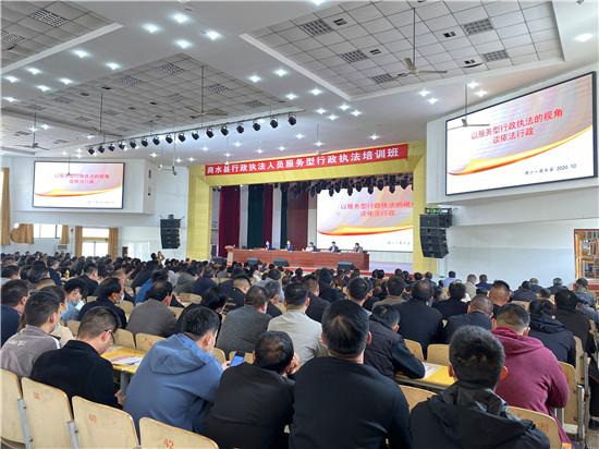 10月19日,商水縣召開(kāi)行政執(zhí)法人員服務(wù)型執(zhí)法培訓(xùn)會(huì)??h委常委、政法委書(shū)記、縣政府黨組成員王勇,市司法局黨組成員、副局長(zhǎng)鄭啟新,市司法局依法行政指導(dǎo)科科長(zhǎng)楊玉芹出席培訓(xùn)會(huì)。縣司法局黨組書(shū)記、局長(zhǎng)王洪輝主持會(huì)議。