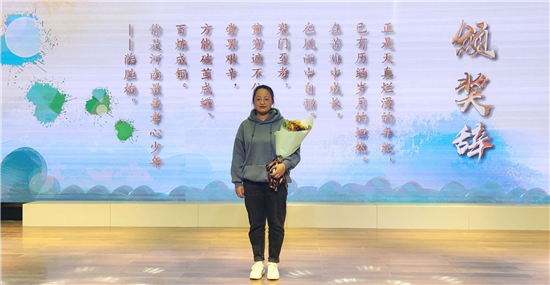 “正是天真爛漫的年紀(jì),已有歷經(jīng)歲月的坦然。在苦難中成長(zhǎng),在風(fēng)雨中自強(qiáng)。寒門(mén)至孝,貧窮遮不住你內(nèi)心的光芒。嘗罷艱辛,方能破繭成蝶、百煉成鋼。你是‘河南最美孝心少年’——薛勝楠?!边@是組委會(huì)給薛勝楠的頒獎(jiǎng)詞。
