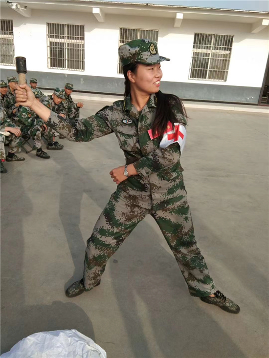 白衣天使愛武裝,聚焦打贏練武忙。在隊列訓練中,20名女民兵按照教練的口令,一遍一遍的練習立正、稍息、停止間轉(zhuǎn)法,很快隊伍隊列有了起色,基干民兵魏慧娟剛開始還有些順拐,兩條腿也不聽使喚,教練員劉思嘉一遍一遍為她開小灶、糾正動作,三番五次,不厭其煩。終于,魏慧娟不順拐了,并通過加班加點、不斷刻苦的訓練,成為了隊列訓練的標兵。
